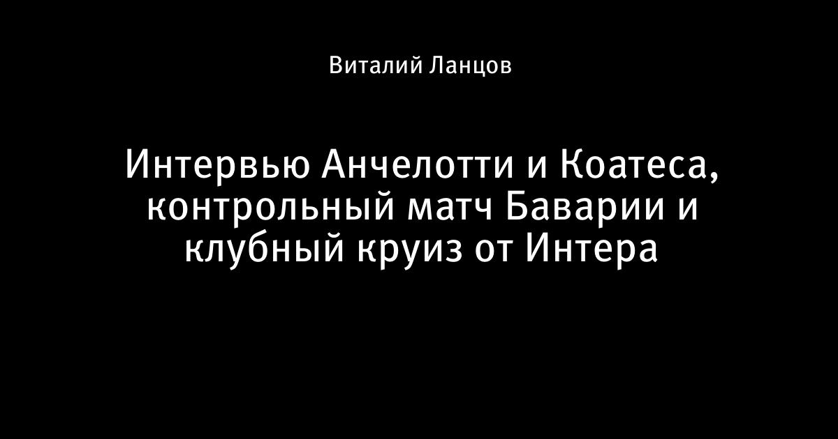 Интервью Анчелотти и Коатеса, контрольный матч Баварии и клубный круиз от Интера