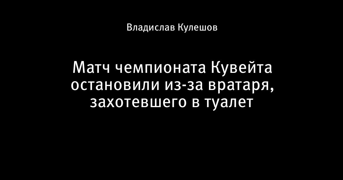 13 января 2013, 15:19 Матч чемпионата Кувейта остановили из-за вратаря, захотевшего в туалет 1 Автор Владислав Кулешов Этот пост опубликован в блоге на Трибуне Sports.ru. Присоединяйтесь к крупнейшему сообществу спортивных болельщиков! Другие посты блога Телевизор 3.0 видео