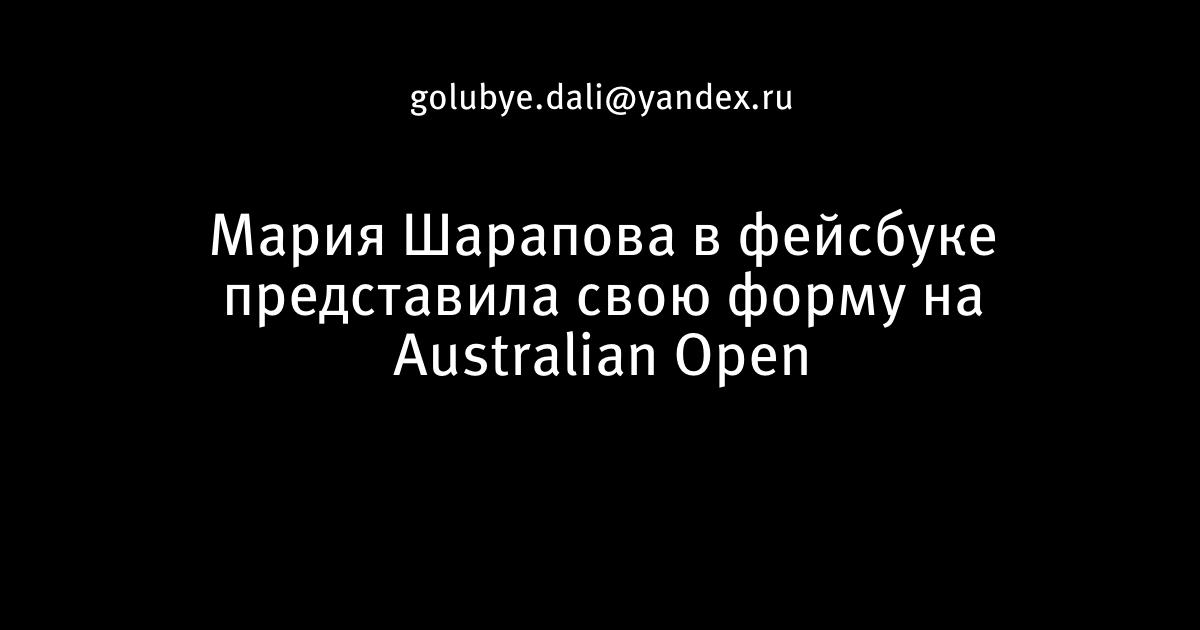13 января 2013, 18:58 Мария Шарапова в фейсбуке представила свою форму на Australian Open Автор golubye.dali@yandex.ru Этот пост опубликован в блоге на Трибуне Sports.ru. Присоединяйтесь к крупнейшему сообществу спортивных болельщиков! Другие посты блога Девушка дня Australian Open Мария Шарапова