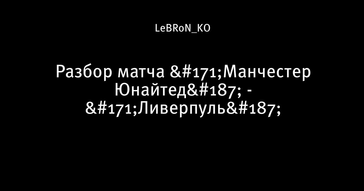 16 января 2013, 22:18 Разбор матча «Манчестер Юнайтед» - «Ливерпуль» 1 Автор LeBRoN_KO Этот пост опубликован в блоге на Трибуне Sports.ru. Присоединяйтесь к крупнейшему сообществу спортивных болельщиков! Другие посты блога Бубнов live Александр Бубнов Ливерпуль Манчестер Юнайтед