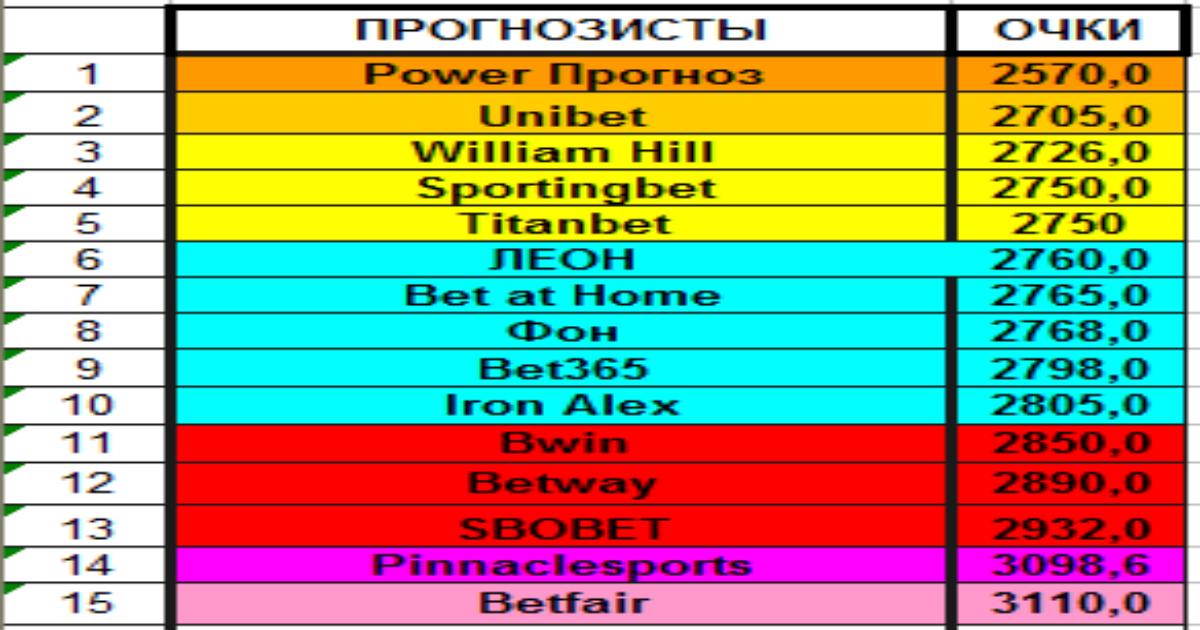Этот тур - тур неожиданностей. И он сумел практически с ног на голову перевернуть общие итоги. И опровергнуть мнение о том, что главное - занизить коэффициент на фаворита и больше ни о чём не думать. Очень здорово погорели конторы, которые этим и занимались. Потом ЛЕОН и Фон и оказались в этом туре совсем не высоко, а Фон и в общем зачёте турнира не особо выделяется. Ну а лидирует Power Прогноз. Но он считается внеконкурсным участником. Потому из букмекеров лидером стоит назвать Bet at Home. Ну а Pinnaclesports и Betfair обживаются на нижнем ярусе в ранге расточительных. Неожиданно низко SBOBET. Их подвела вольница на аутсайдерах.