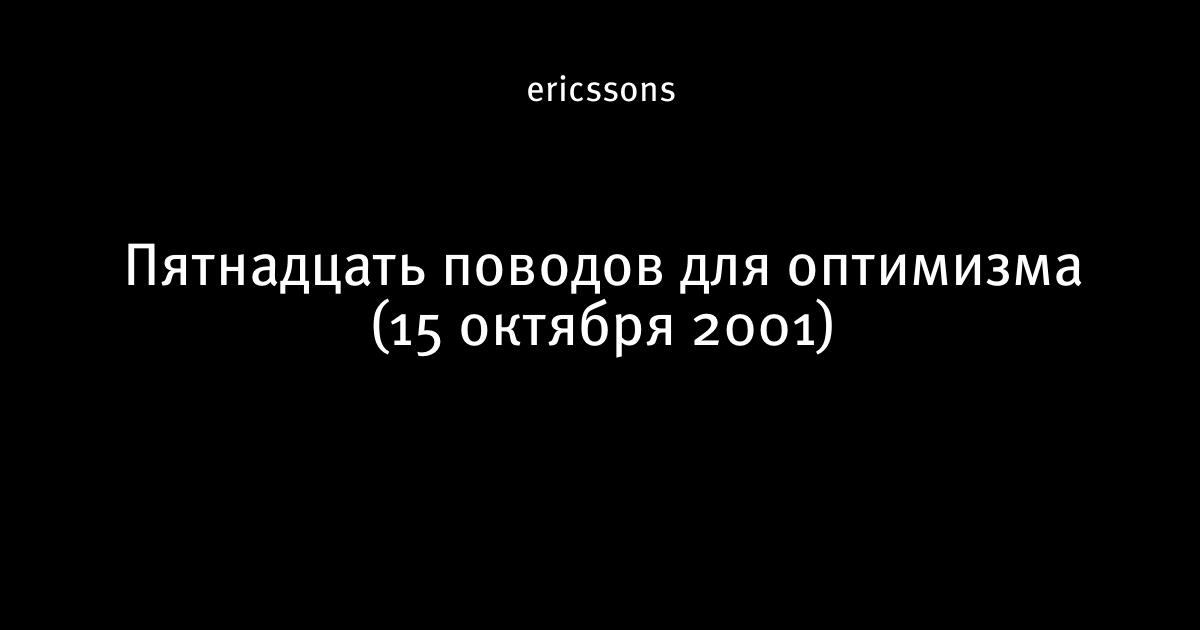 Пятнадцать поводов для оптимизма (15 октября 2001)