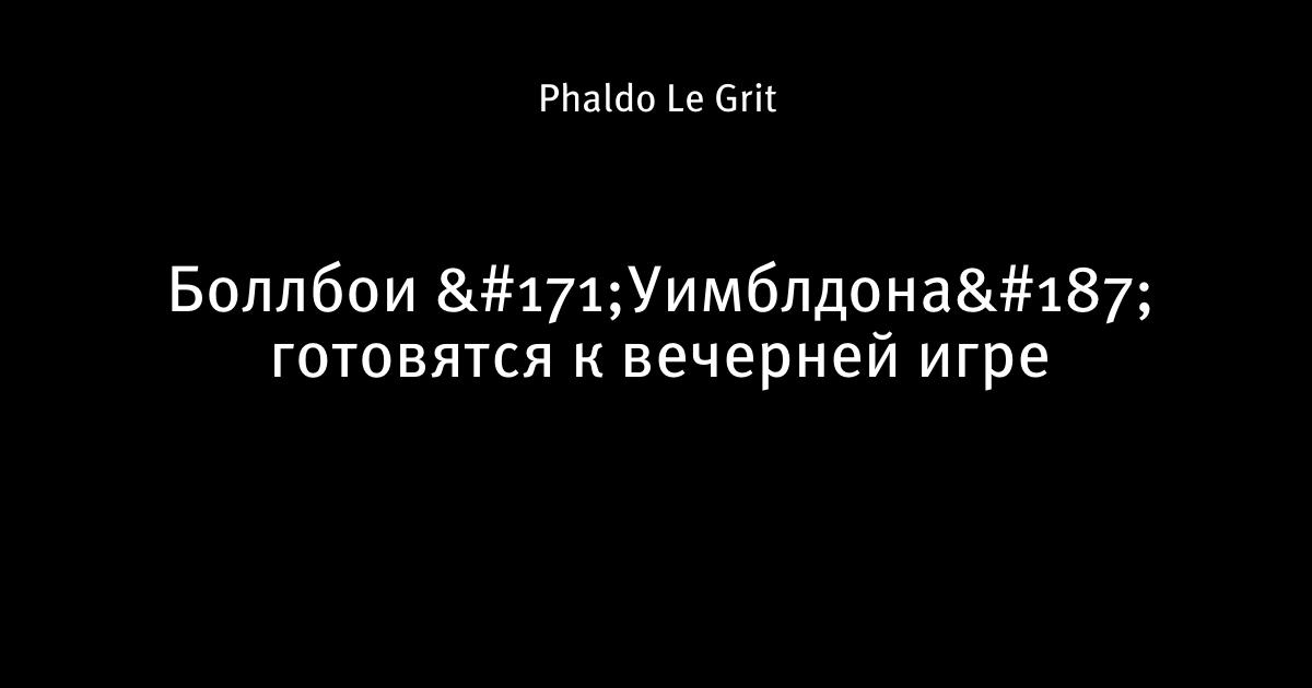 24 января 2013, 16:28 Боллбои «Уимблдона» готовятся к вечерней игре Автор Phaldo Le Grit Этот пост опубликован в блоге на Трибуне Sports.ru. Присоединяйтесь к крупнейшему сообществу спортивных болельщиков! Другие посты блога Вы это видели? Уимблдон