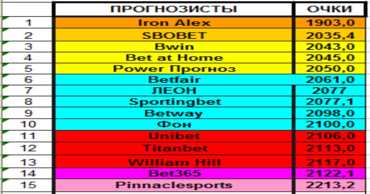 Этот тур выдался довольно усреднённым. Были и победы фаворитов, были ничьи, а ещё были и победы аутсайдеров. Тем не менее, ожидаемых исходов было чуть больше, а потом положение удалось поправить тем, кто давал на фаворитов небольшие коэффициенты. Фон наконец-то смог оправдать свою политику занижения коэффициентов. ЛЕОН продолжает держаться высоко. Bet at Home в этот раз оказалась удивительно прижимиста и ставка сработала.
