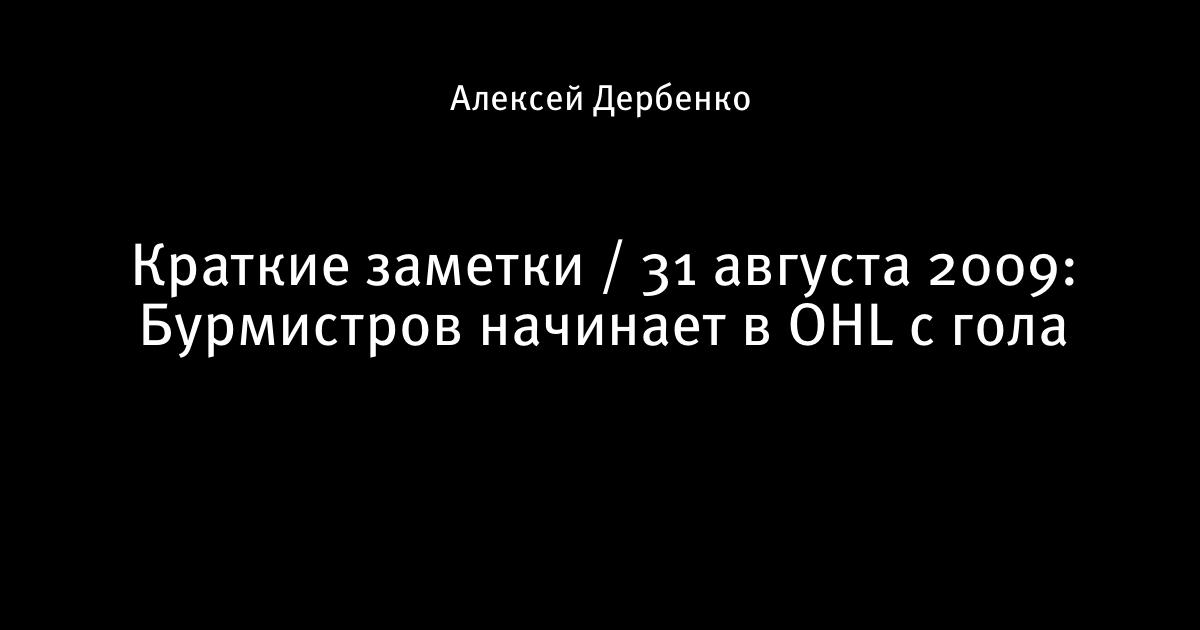 Краткие заметки / 31 августа 2009: Бурмистров начинает в OHL с гола