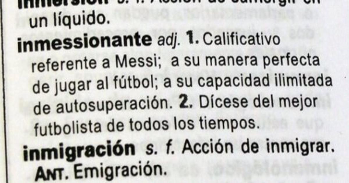 В испанском языке появилось новое слово - "inmessionante", у коготорого два значения: 1 - лучший способ играть в футбол, неограниченная способность к самосовершенствованию; 2 - описывает лучшего игрока в футбол всех времен.