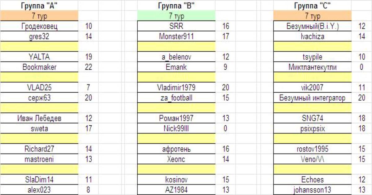 Турнирное положение в группах после сыгранного тура таково: