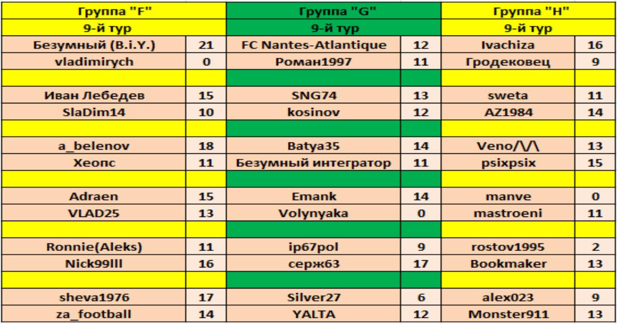 Франция. Результаты 9-го тура 2ГЭ