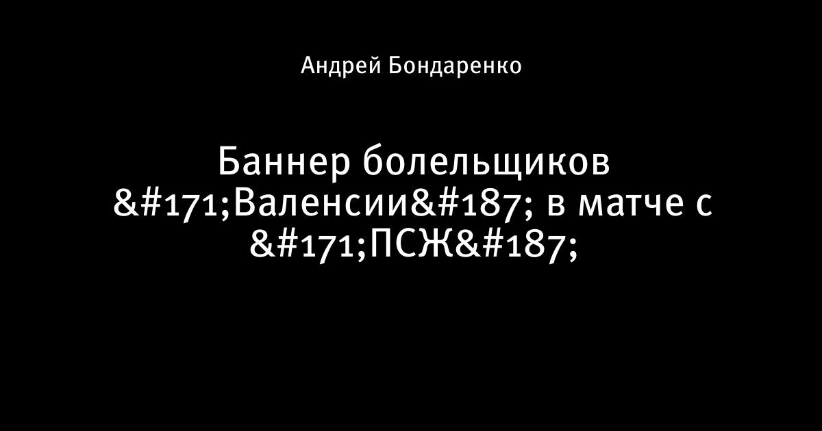 13 февраля 2013, 01:58 Баннер болельщиков «Валенсии» в матче с «ПСЖ» Автор Андрей Бондаренко Этот пост опубликован в блоге на Трибуне Sports.ru. Присоединяйтесь к крупнейшему сообществу спортивных болельщиков! Другие посты блога Вы это видели? Валенсия Лига чемпионов УЕФА фото ПСЖ