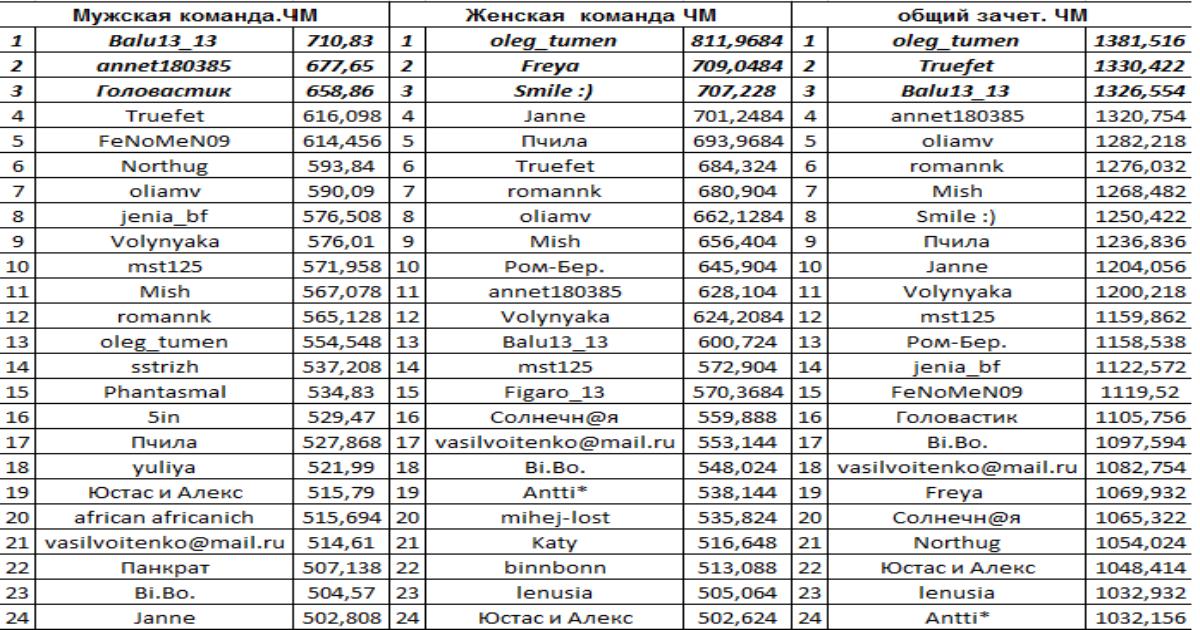 Результаты чемпионата мира: