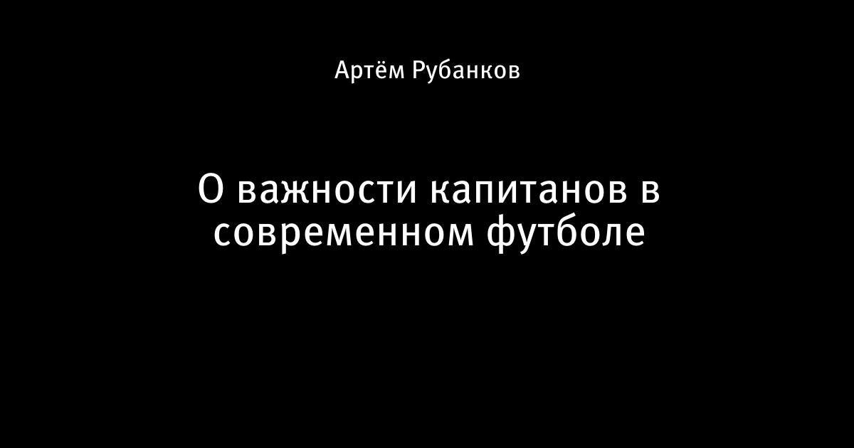 Современный футбол… Как много радости и печали в этом слове. Прекрасная комбинационная игра соседствует с припаркованными у своих ворот автобусами, настоящие мужские поступки – с подлыми симуляциями… Современный футбол изменчив и многогранен. И лишь фигура капитанов неизменна. Они всегда были и они всегда будут. Они будут компенсировать своим мужскими имиджем подлые поступки одноклубников, как это делает Карлес Пуйоль из Барсы, являясь капитаном Бускетса и прочих любителей полежать на газоне. И он своим имиджем заслоняет этих бускетсов, уводя внимание многих людей от них и оберегая. Ведь это – именно то, что должен делать капитан. Это то, зачем он нужен. Несмотря на то, что футбол в наши дни кругом меняется, фигура капитанов остается неизменно важной. Ведь разве вы можете представить футбольную команду без капитана? Я – не могу.