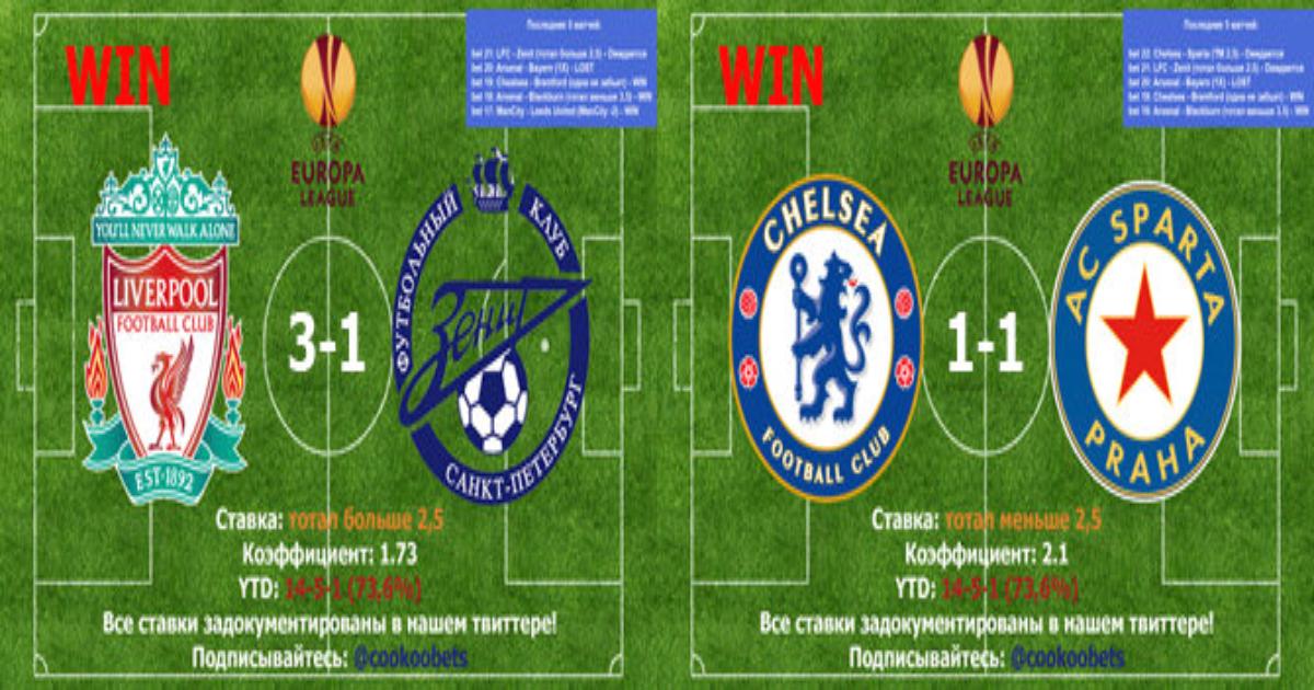 bet 22: Chelsea - Sparta (тотал меньше 2,5) - WIN