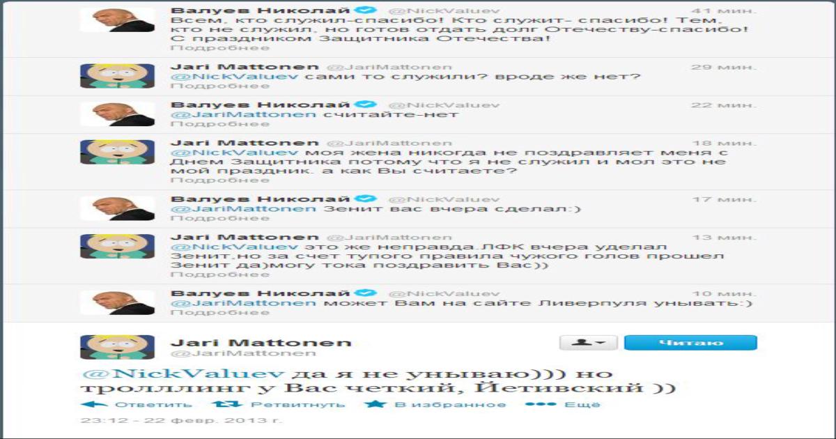 ilby фейк-аккаунт Романа Абрамовича в твиттере: "Служу России. Дорого" 22 февраля 2013, 22:40 +7 Ответить
