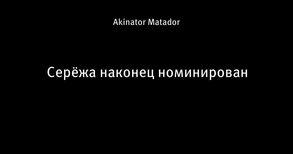 Akinator Matador Конечно это очень актуально. Через 2 дня Оскар. 23 февраля 2013, 11:18 Ответ на комментарий Маньяк это так смешно, очень актуально +36 Ответить