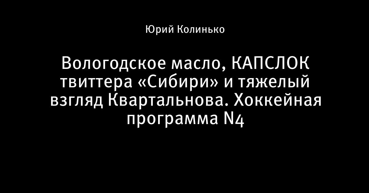 2 марта 2013, 15:56 Вологодское масло, КАПСЛОК твиттера «Сибири» и тяжелый взгляд Квартальнова. Хоккейная программа N4 1 Автор Юрий Колинько Этот пост опубликован в блоге на Трибуне Sports.ru. Присоединяйтесь к крупнейшему сообществу спортивных болельщиков! Другие посты блога Айс-ТВ Сибирь Авангард КХЛ