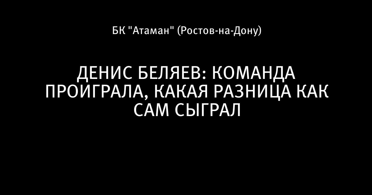 ДЕНИС БЕЛЯЕВ: КОМАНДА ПРОИГРАЛА, КАКАЯ РАЗНИЦА КАК САМ СЫГРАЛ