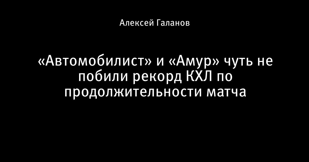 Застывшие на табло цифры 3:3 переместились в овертайм, но мало кто из болельщиков мог предполагать, что им предстоит увидеть целых три дополнительных периода. «Автомобилист» и «Амур», по сути, сыграли еще один матч, чтобы забросить шайбу. Это удалось сделать защитнику «шоферов» Браниславу Мезеи при розыгрыше большинства, причем этот хоккеист за время «бесконечных» овертаймов успел отбыть 10-минутный дисциплинарный штраф. Победный гол «Автомобилиста» был забит на 117 минуте – еще пару минут, и матч стал бы историческим, побив рекорд КХЛ по продолжительности. К слову, сейчас он составляет 118 минут 48 секунд.