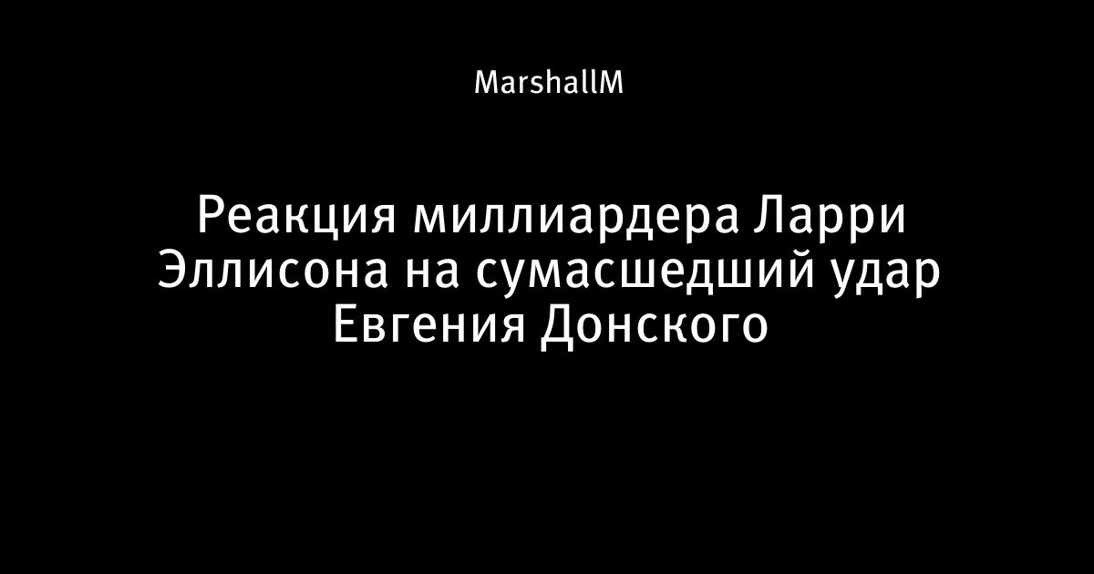 12 марта 2013, 19:12 Реакция миллиардера Ларри Эллисона на сумасшедший удар Евгения Донского 1 Автор MarshallM Этот пост опубликован в блоге на Трибуне Sports.ru. Присоединяйтесь к крупнейшему сообществу спортивных болельщиков! Другие посты блога Вы это видели? Евгений Донской Энди Маррей ATP