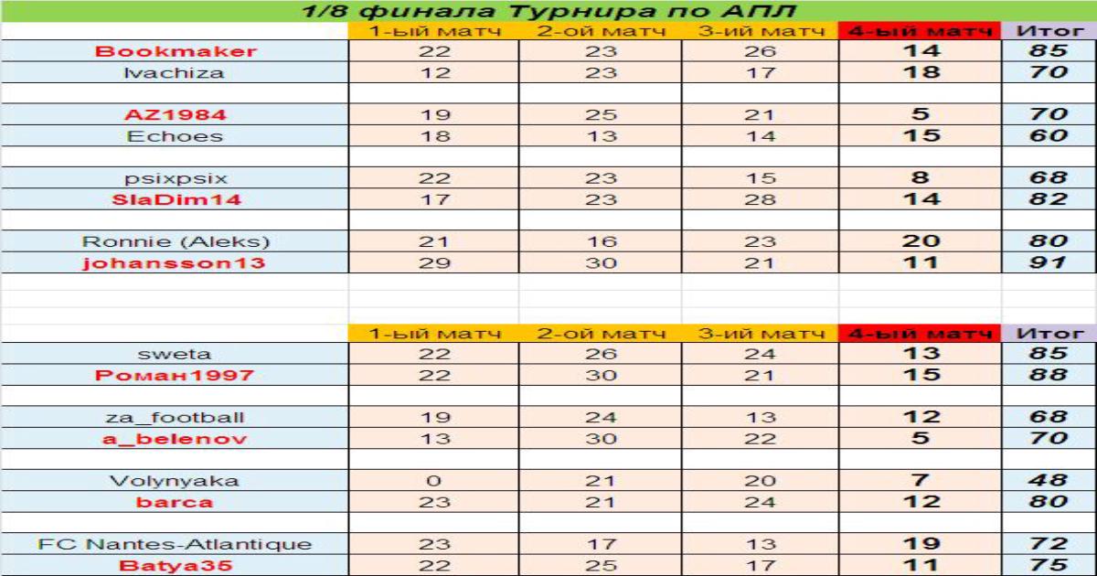 В рамках прошедшего 29-го тура Чемпионата Английской Футбольной Премьер-Лиги состоялись 4-е, заключительные, матчи 1/8 финала Турнира по АПЛ, которые завершились следующим образом: