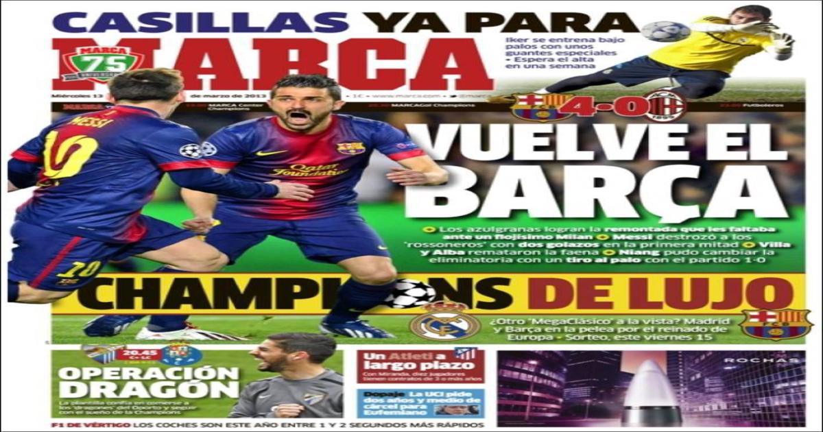 «Мадрид» и «Барса» вместе отправляются на пятничную жеребьевку следующей стадии турнира. Дубль Месси и мячи Вильи и Альбы уничтожили неподготовленный «Милан». Вилья: «В такие превосходные моменты забываешь обо всем плохом».