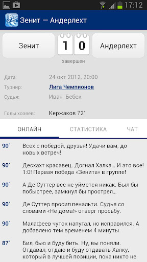 Онлайны матчей работают точно так же, как на сайте, но выглядят еще красивее и компактнее.