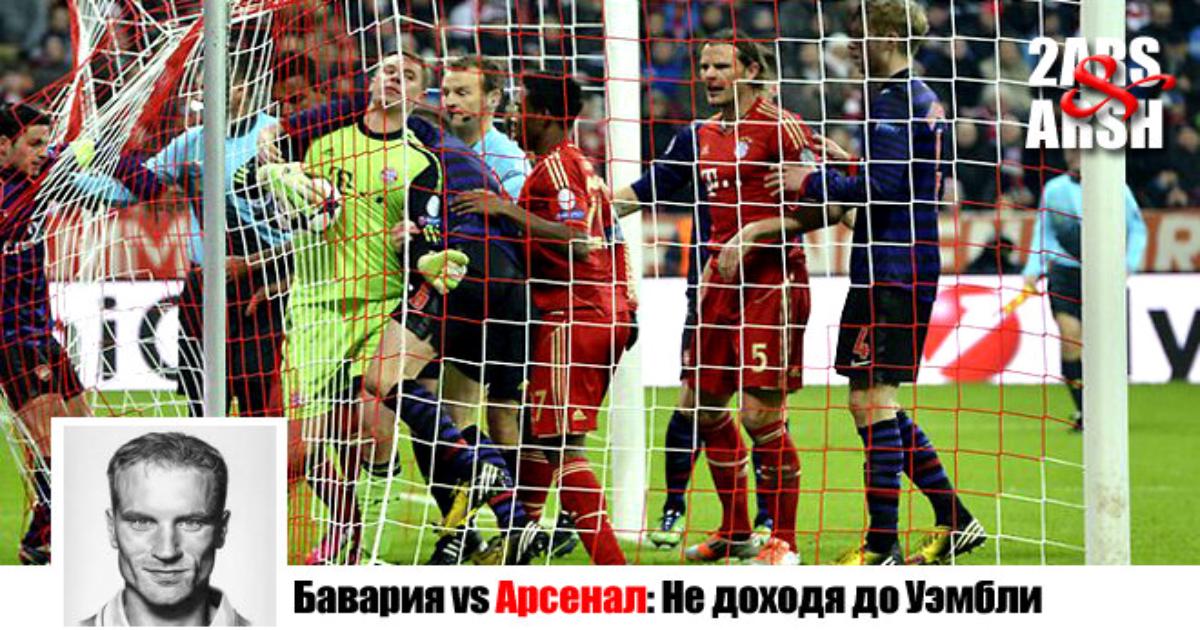 Собственно говоря, результат матча оказался точно посередине между ожиданиями и надеждами. Снова сумели громко стукнуть дверьми, снова не повезло с судейством, снова, снова, снова. Не знаю как Вам, а мне все эти «ушли как мужчины», «проявили характер» и т.д. не приносит абсолютно никакого удовлетворения. Мне это всё до лампочки. Арсенал играл плохо, и Лига Чемпионов для нас закончилась. Обидно, что Бавария играла так себе, а для них всё продолжается.