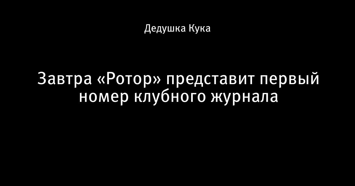 В конце рабочей недели и перед первым в эту весеннюю пору («я из дому вышел – был сииильный мороз»;))) домашним матчем «Ротора» клубный менеджмент приготовил взыскательным болельщикам приятный сюрприз. 15 марта в пятницу в 17 часов в Южном павильоне стадиона «Центральный» будет представлено еще одно детище клуба – собственный журнал.