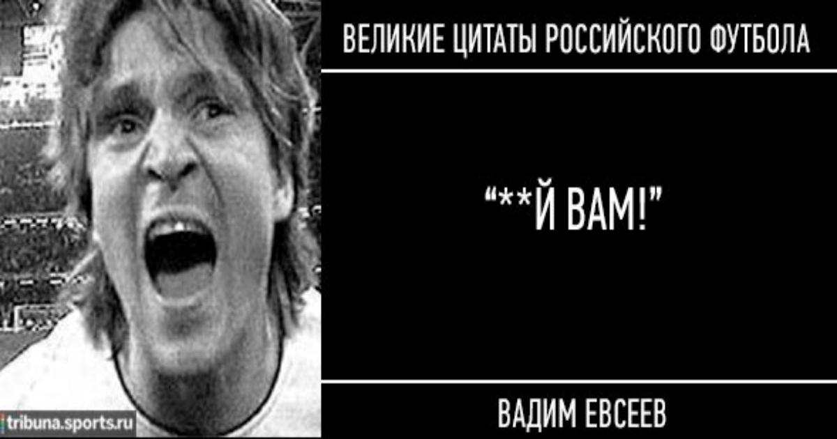 19 марта 2013, 14:35 Еще 11 культовых цитат российского футбола Вадим Евсеев 1 Загружаю... Виталий Мутко 2 Александр Бубнов Загружаю... 3 Болельщики «Спартака» 4 Загружаю... Лучано Спаллетти 5 Геннадий Орлов 6 Загружаю... Георгий Черданцев 7 Загружаю... 8 Валерий Газзаев 9 Загружаю... Евгений Савин 10 Анатолий Бышовец Загружаю... 15 культовых цитат российского футбола Автор Артем Шмелев