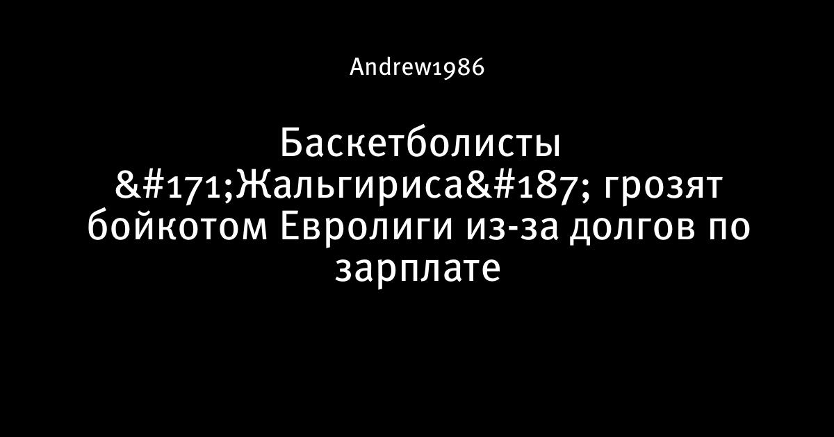 Не получающие зарплаты игроки литовского баскетбольного клуба "Жальгирис" (Каунас) пригрозили бойкотировать очередной матч Евролиги, который команда должна на следующей неделе провести в столице Германии с местной "Альбой".