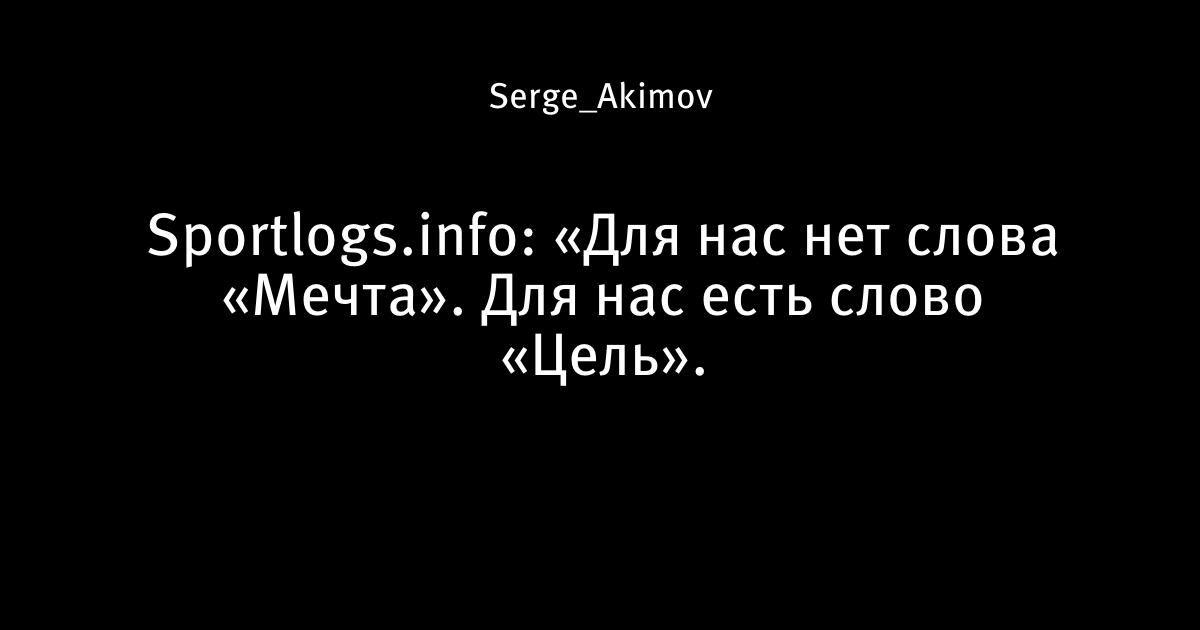 Sportlogs.info: «Для нас нет слова «Мечта». Для нас есть слово «Цель».
