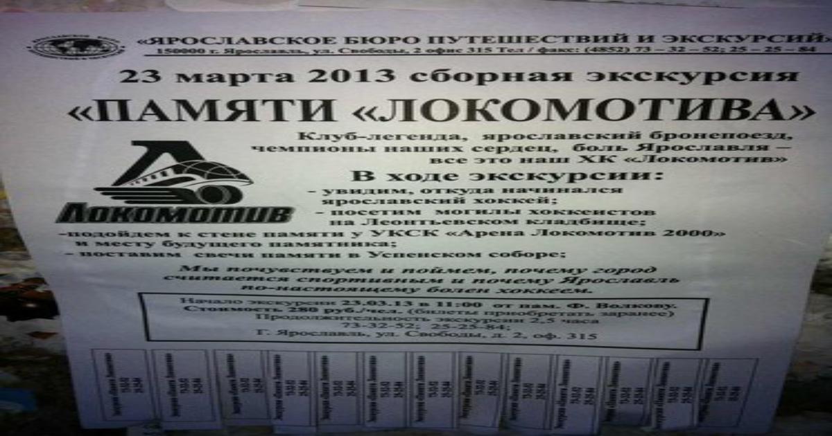 И в третьих, действительно, если человек, оказавшийся проездом в Ярославле, захочет отдать дань уважения погибшим хоккеистам и у него ограничено время, он что, должен по всему городу ходить и у всех спрашивать, где и как это можно сделать? А люди здесь профессионально организовали такие экскурсии, для ЖЕЛАЮЩИХ, а не для всех. И даже свечи ставят в Успенском соборе за погибших. И за экскурсию берут символические 280 руб. (ну не бесплатно же им работать). Нужно видеть здесь положительную сторону, а не негатив (которого, по сути и нет).