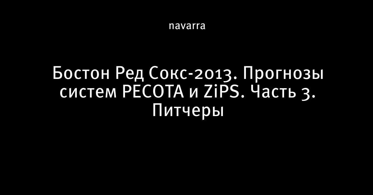 Наконец-то я добрался до третьей части анализа прогнозов систем PECOTA и ZiPS сезона 2013 года для Бостон Ред Сокс. В первой части я попытался объяснить вам, что такое вообще эти прогностические системы, как они работают, и какие прогнозируемые показатели я включил в индивидуальные таблицы игроков, а во второй части я проанализировал прогнозы обеих систем насчёт хиттеров. И вот - заключительная статья на эту тему.