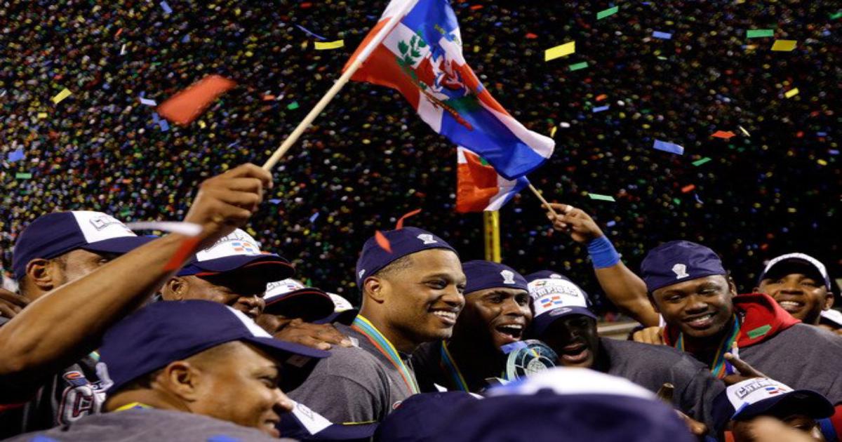 Роби Кано и его партнеры по сборной Доминиканы празднуют победу в Мировой Классике