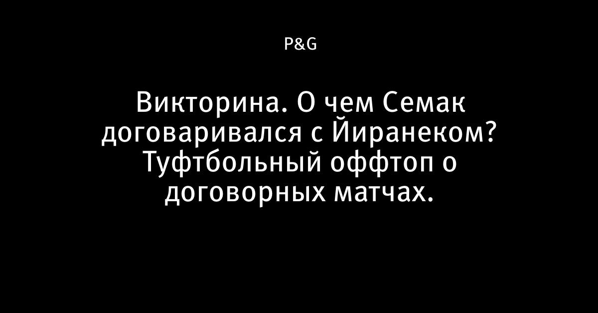 Викторина. О чем Семак договаривался с Йиранеком? Туфтбольный оффтоп о договорных матчах.