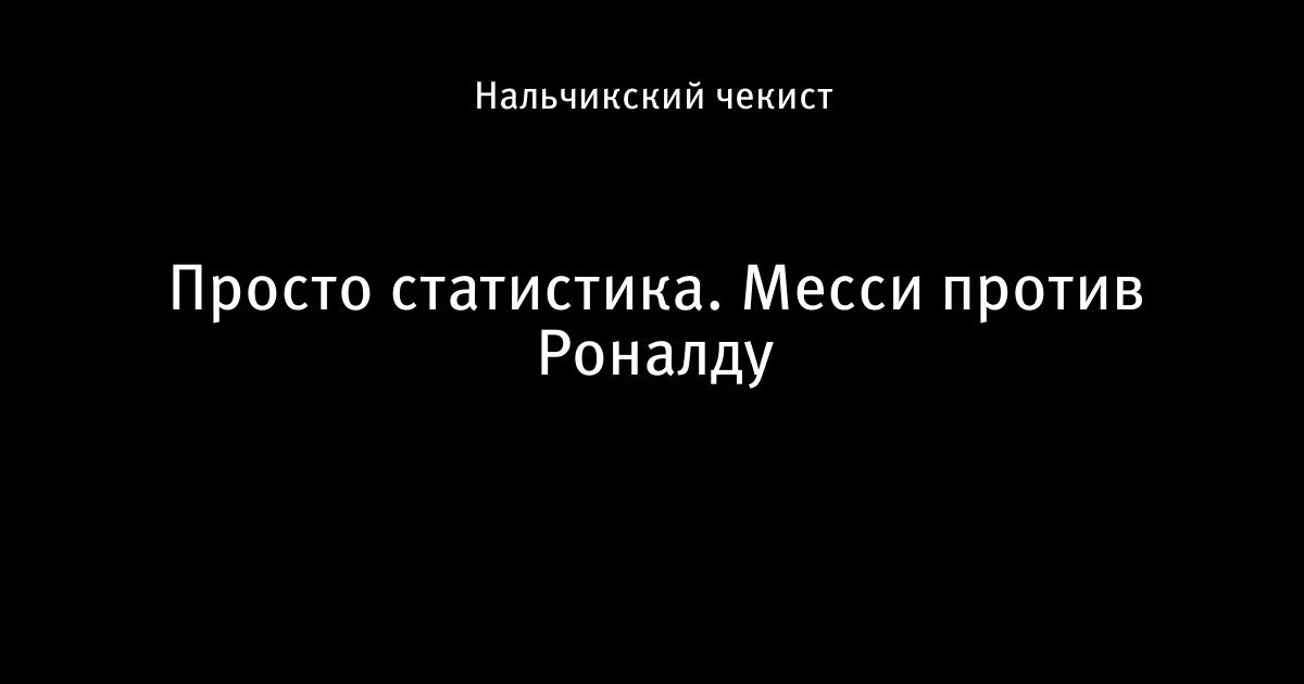 27 марта 2013, 21:14 Просто статистика. Месси против Роналду Автор Нальчикский чекист Этот пост опубликован в блоге на Трибуне Sports.ru. Присоединяйтесь к крупнейшему сообществу спортивных болельщиков! Другие посты блога Телевизор 3.0 Лионель Месси Криштиану Роналду