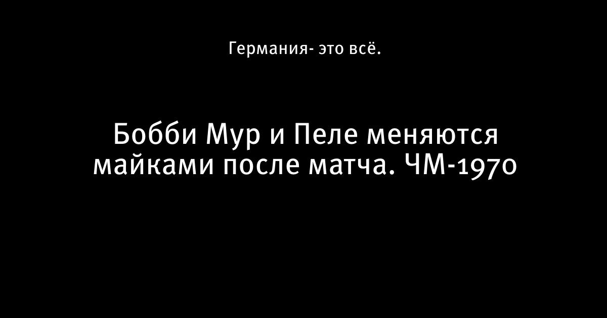 28 марта 2013, 19:26 Бобби Мур и Пеле меняются майками после матча. ЧМ-1970 Автор Германия- это всё. Этот пост опубликован в блоге на Трибуне Sports.ru. Присоединяйтесь к крупнейшему сообществу спортивных болельщиков! Другие посты блога 20th century fox Сборная Бразилии по футболу чемпионат мира Бобби Мур Сборная Англии по футболу Пеле