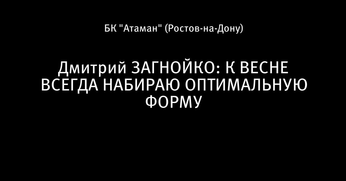 Дмитрий ЗАГНОЙКО: К ВЕСНЕ ВСЕГДА НАБИРАЮ ОПТИМАЛЬНУЮ ФОРМУ