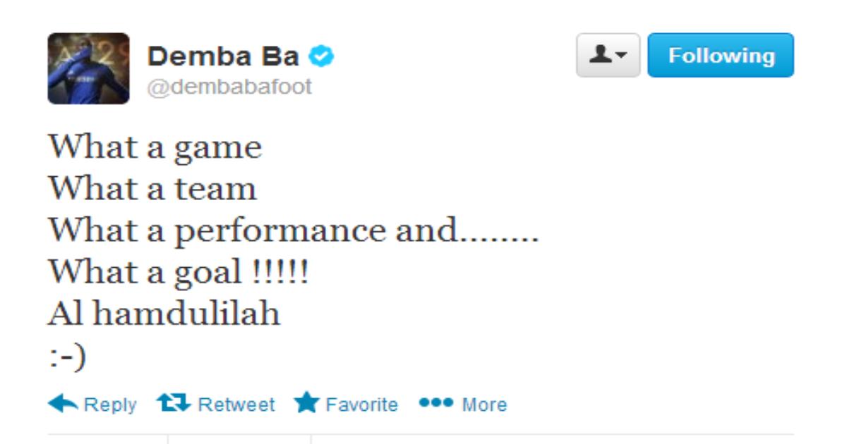 Демба Ба – в чем отличие нападающего от Торреса – он бьет по воротам. И иногда получаются вот такие шедевры.