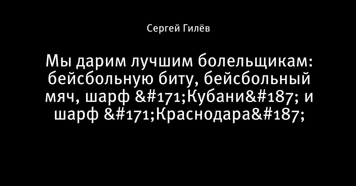 Мы дарим лучшим болельщикам: бейсбольную биту, бейсбольный мяч, шарф «Кубани» и шарф «Краснодара»