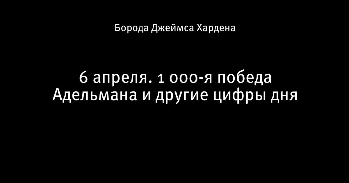 6 апреля. 1 000-я победа Адельмана и другие цифры дня