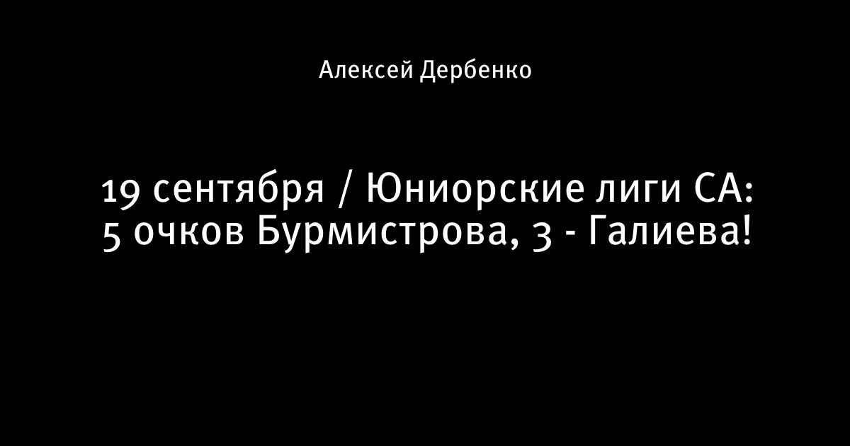 19 сентября / Юниорские лиги СА: 5 очков Бурмистрова, 3 - Галиева!
