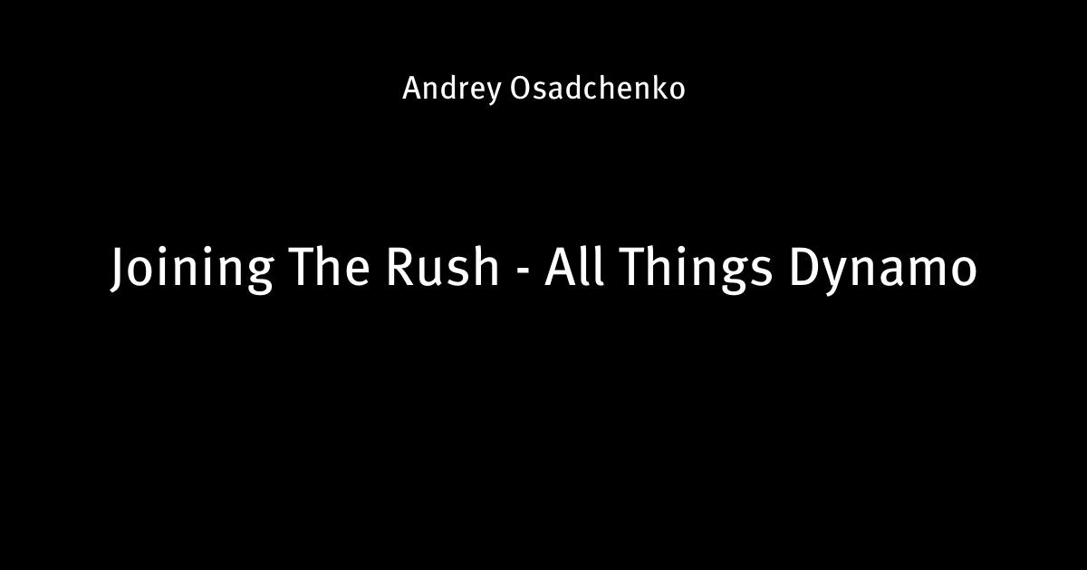 10 апреля 2013, 16:50 Joining The Rush - All Things Dynamo 1 Автор Andrey Osadchenko Этот пост опубликован в блоге на Трибуне Sports.ru. Присоединяйтесь к крупнейшему сообществу спортивных болельщиков! Другие посты блога Айс-ТВ