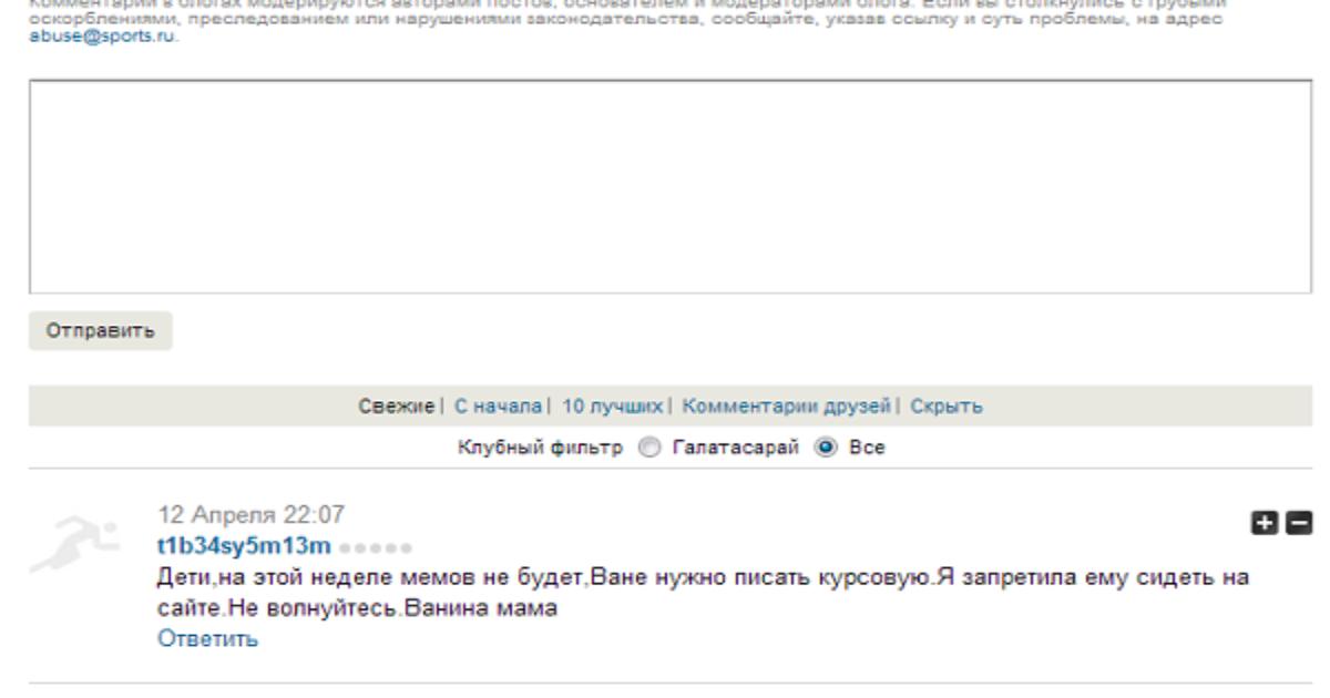 А если без шуток, то пост не очень удачный. Дело не в симпатиях или антипатиях к объекту шуток, а в методе его преподношения. Хотим мы этого или нет, но в шутке фигурирует мать некоего пользователя. Какой-то кретин пишет от её имени, и, вполне вероятно, найдутся не мало субъектов, которые начнут подшучивать над ней/ним. В итоге, невольным объектом шуток и скабрезностей станет женщина, статус которой у многих народов превозносят над святыми. А эта "шутка" еще и отскринина и выставлена на обозрение и голосование.