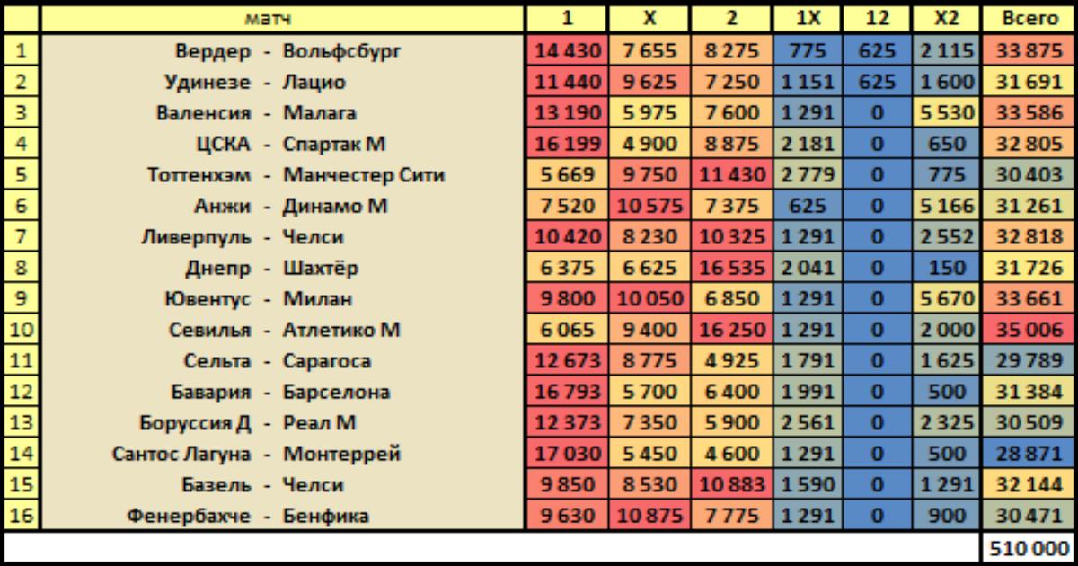 В текущем туре допускается изменять прогноз на матчи еврокубков до начала матча, как в плане исхода матча, так и в поставленной сумме, но в рамках бюджета и ограничений на max и min ставку.