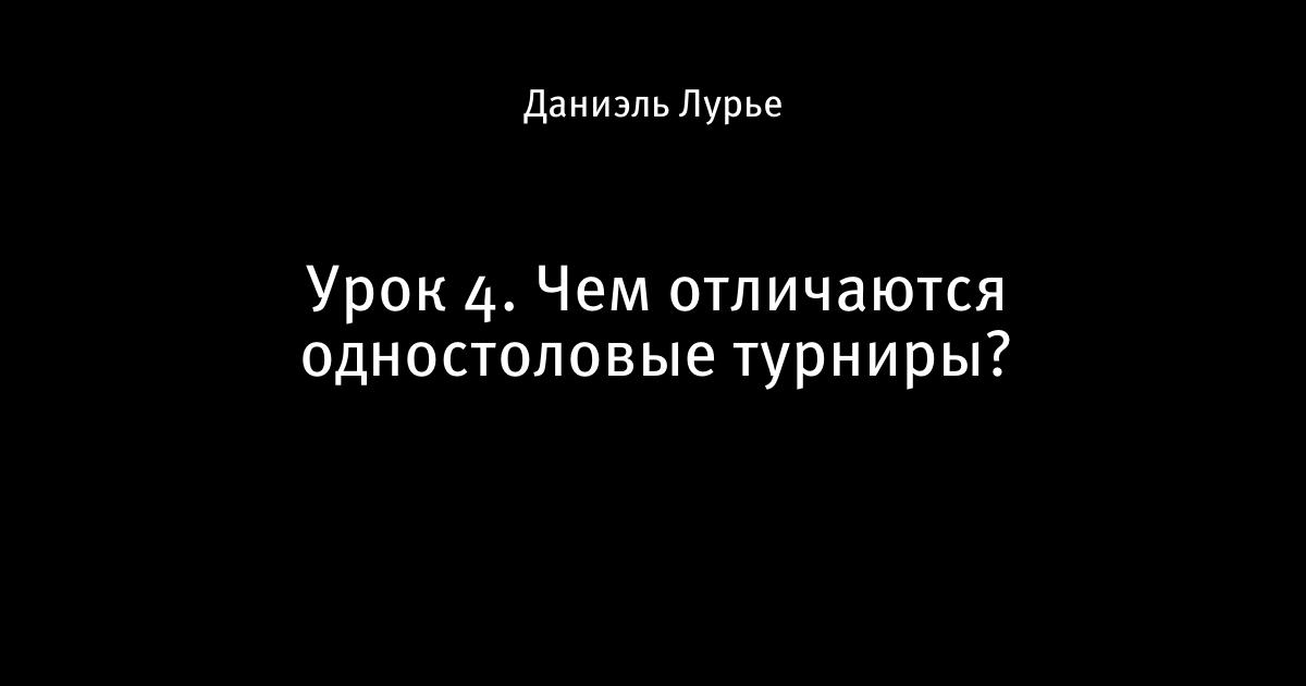 В четвертом уроке Илья Городецский предлагает начинать знакомство с турнирным покером с одностоловых турниров и наглядно демонстрирует, как их надо играть. Попутно выясняется, что такое "тайтовая игра", "баббл" и "пушбот".