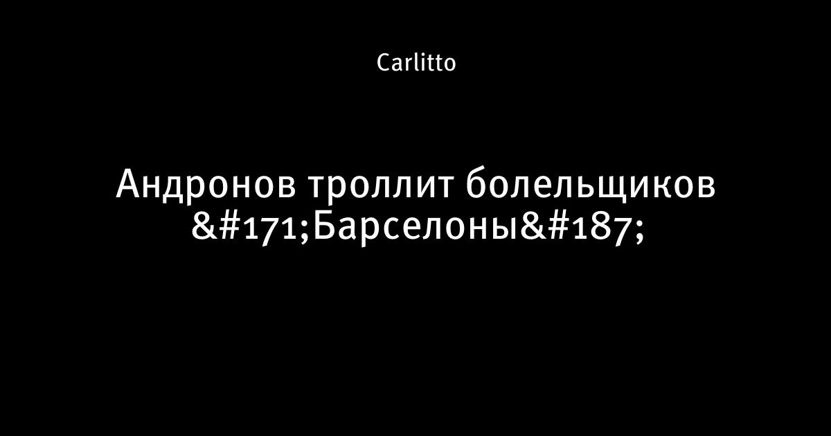 24 апреля 2013, 12:55 Андронов троллит болельщиков «Барселоны» Автор Carlitto Этот пост опубликован в блоге на Трибуне Sports.ru. Присоединяйтесь к крупнейшему сообществу спортивных болельщиков! Другие посты блога Телевизор 3.0 болельщики Барселона