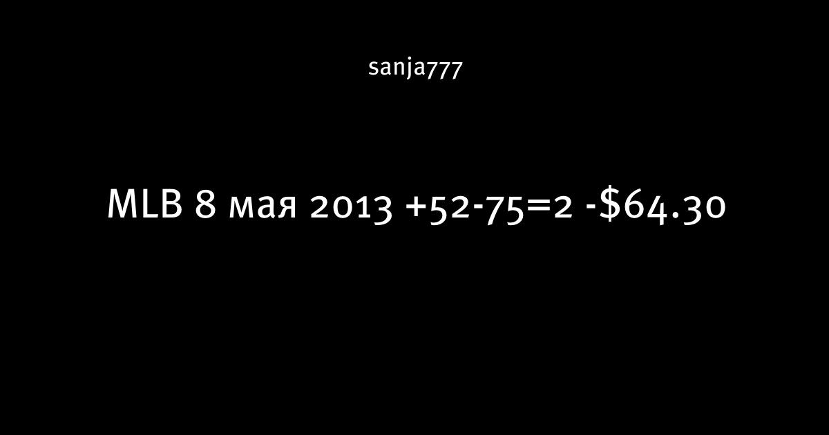 MLB 8 мая 2013 +52-75=2 -$64.30