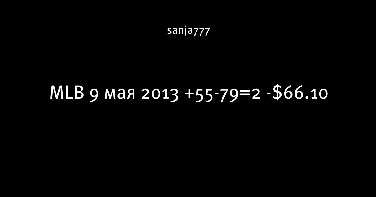 MLB 9 мая 2013 +55-79=2 -$66.10