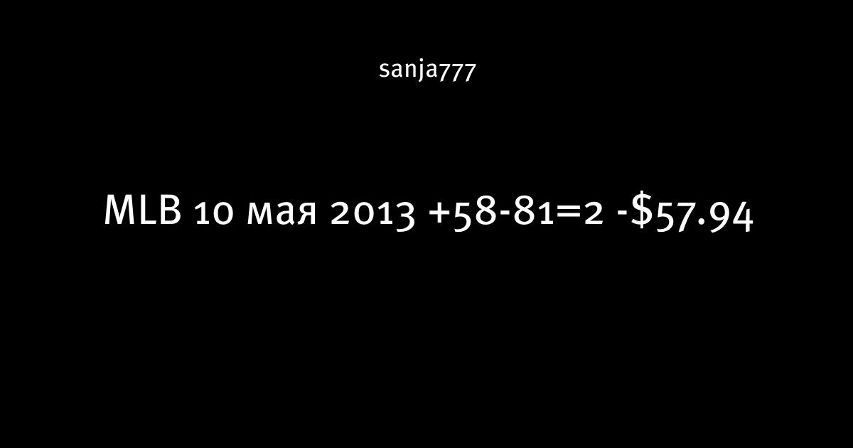 MLB 10 мая 2013 +58-81=2 -$57.94