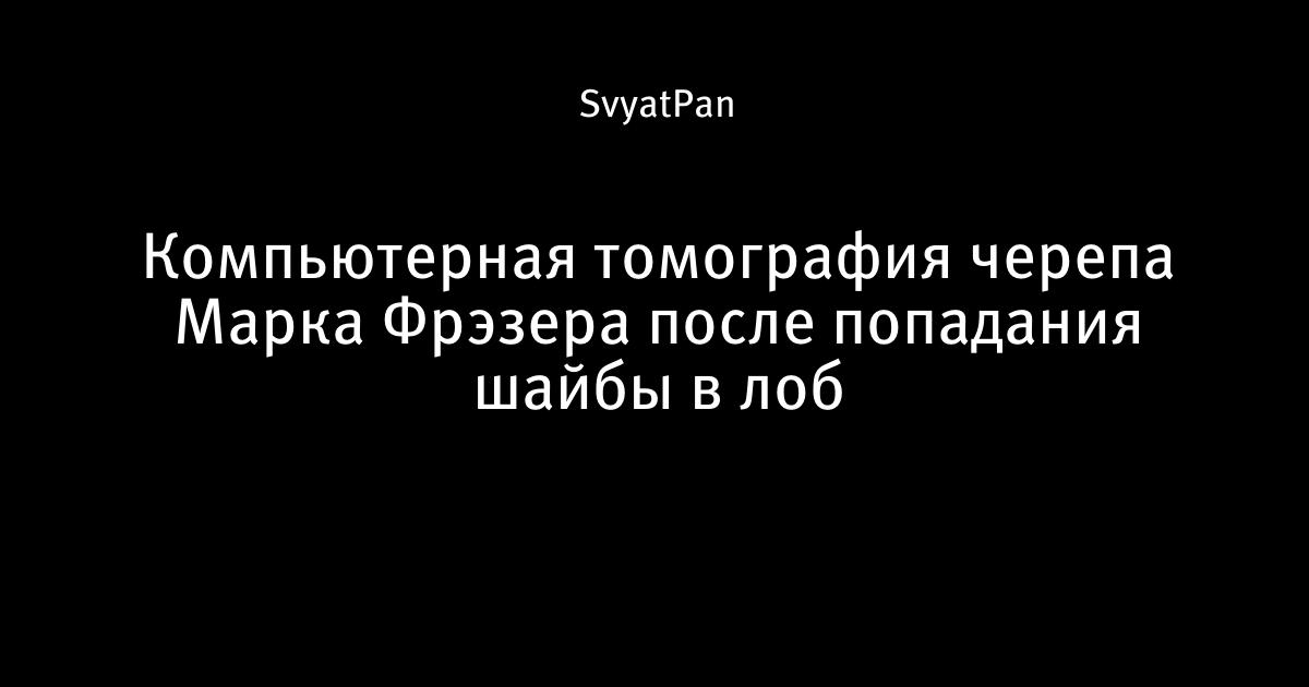12 мая 2013, 08:48 Компьютерная томография черепа Марка Фрэзера после попадания шайбы в лоб Компьютерная томография черепа Фрейзера Видео, которое уже было 1 Автор SvyatPan Этот пост опубликован в блоге на Трибуне Sports.ru. Присоединяйтесь к крупнейшему сообществу спортивных болельщиков! Другие посты блога Айс-ТВ